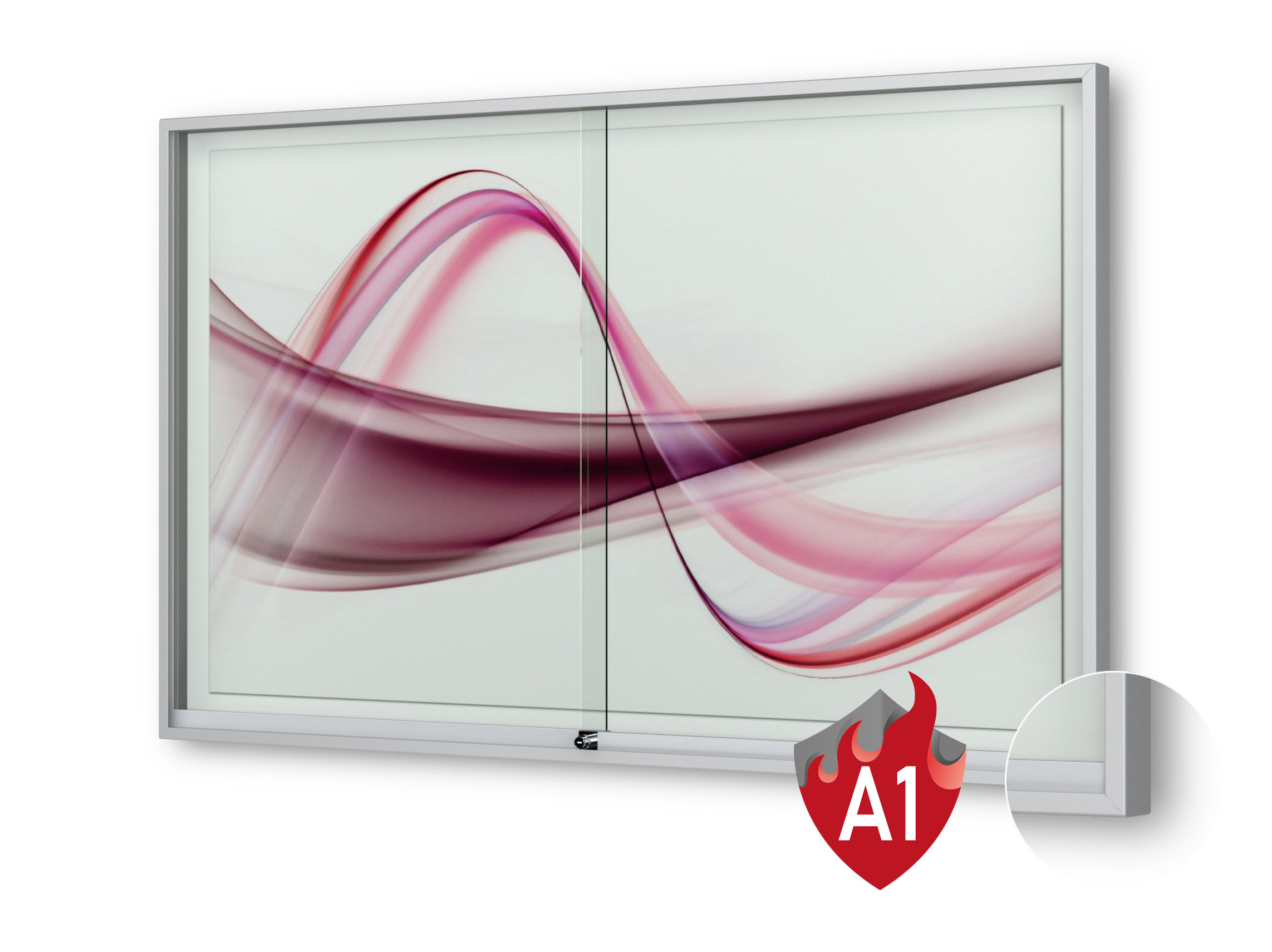 | Merkmale Schaukasten: | Brandschutz, Wandmontage, abschliessbar, magnetisch, mit Schiebetüren |