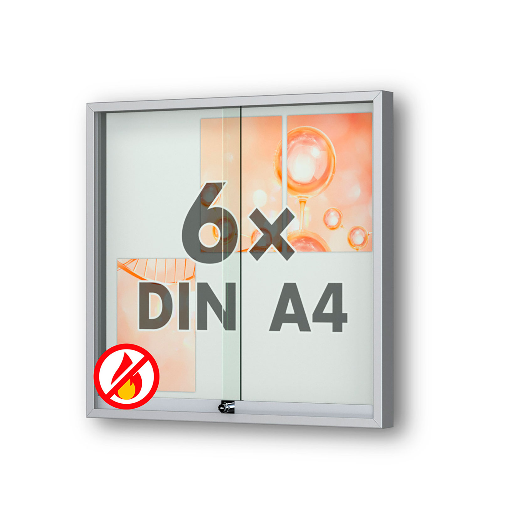 Plakatvitrine: Brandschutz, Montageort: Innen, Wandmontage, abschliessbar, mit Schiebetüren